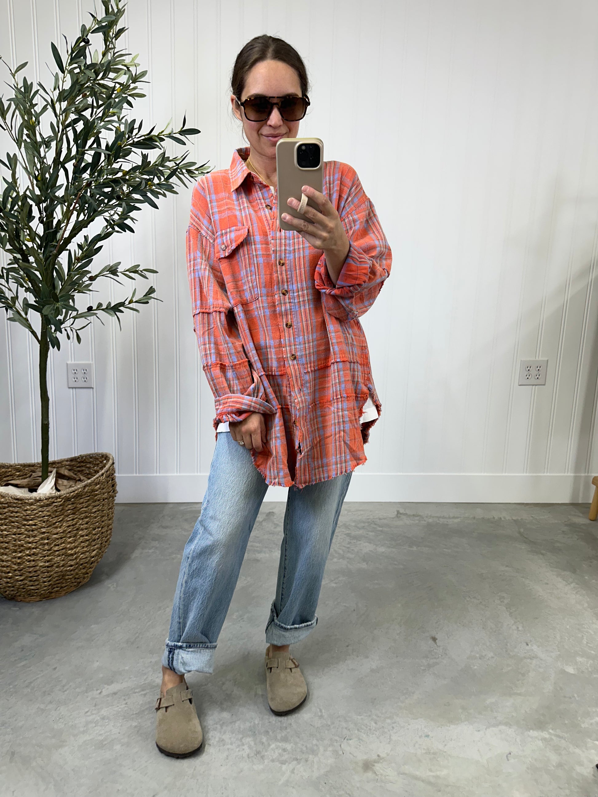 Backroads Oversized Flannel in Coral