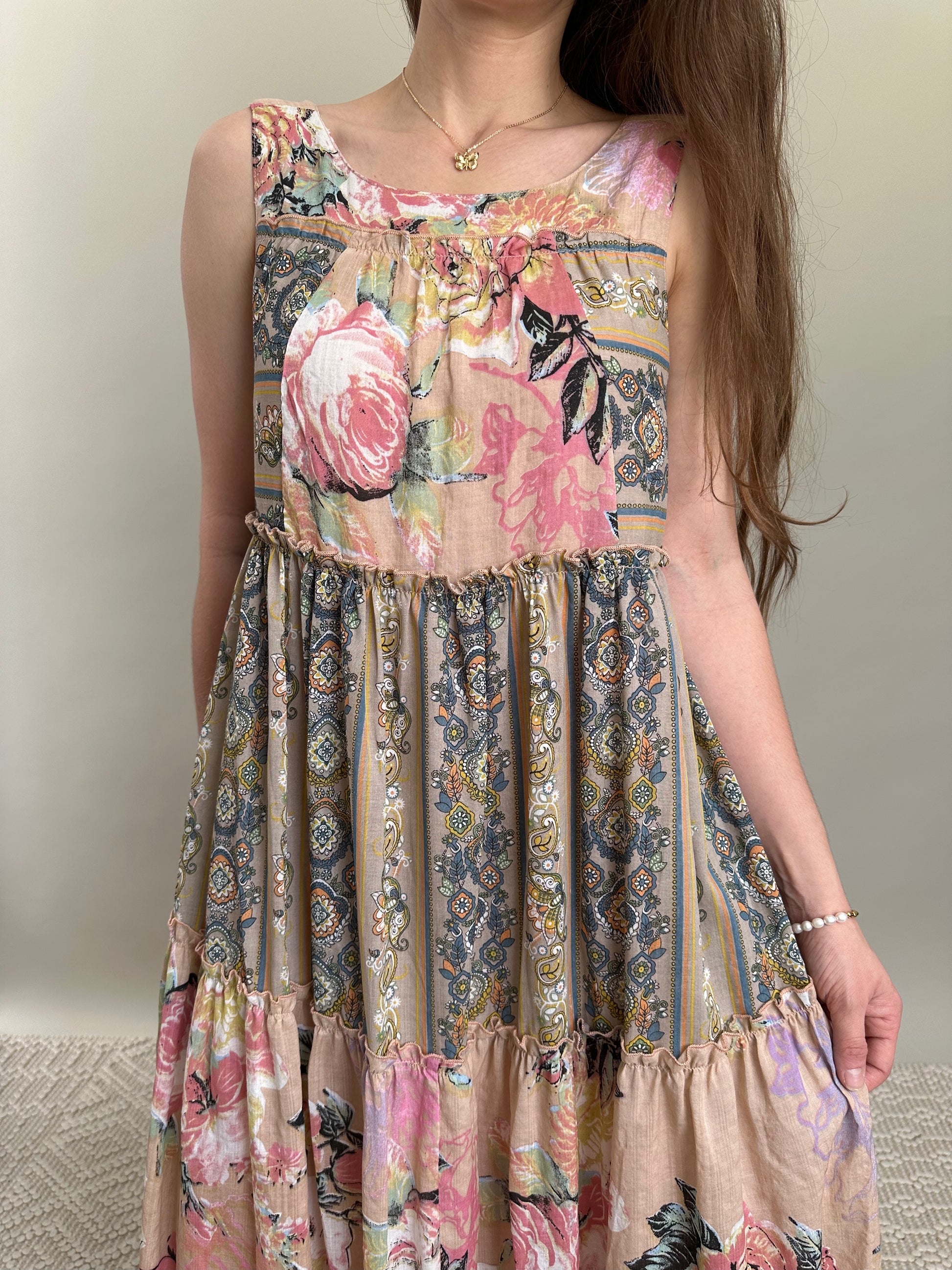 Flowy, feminine, and effortlessly boho—the Boho Bloom Dress is made for dreamy days and carefree moments. Designed with four billowy tiers, a scoop back, and hidden pockets, this dress is both stylish and functional. Whether you're wandering through a farmer’s market or twirling at a spring soirée, this piece moves with you for an easygoing, ethereal feel.