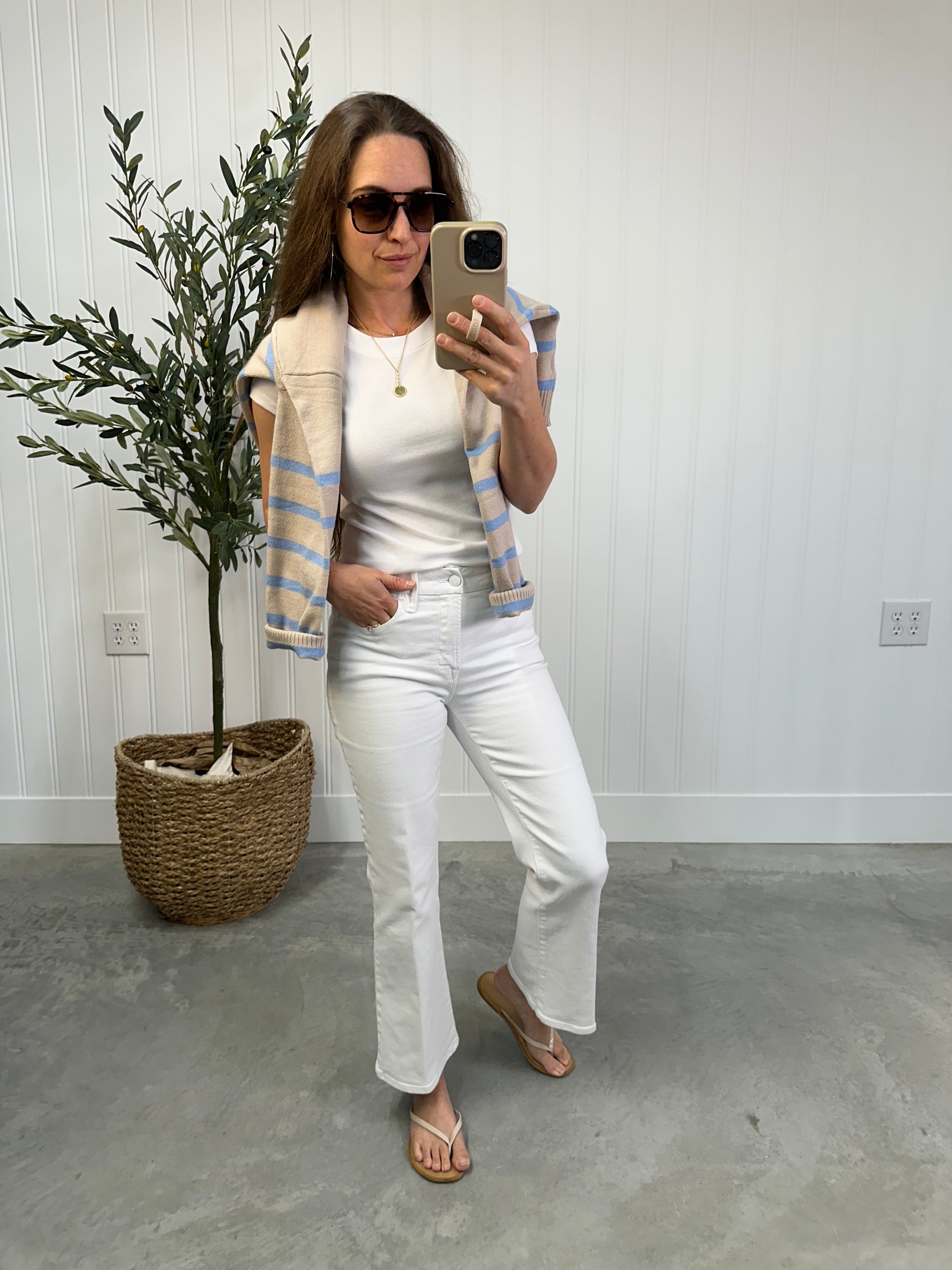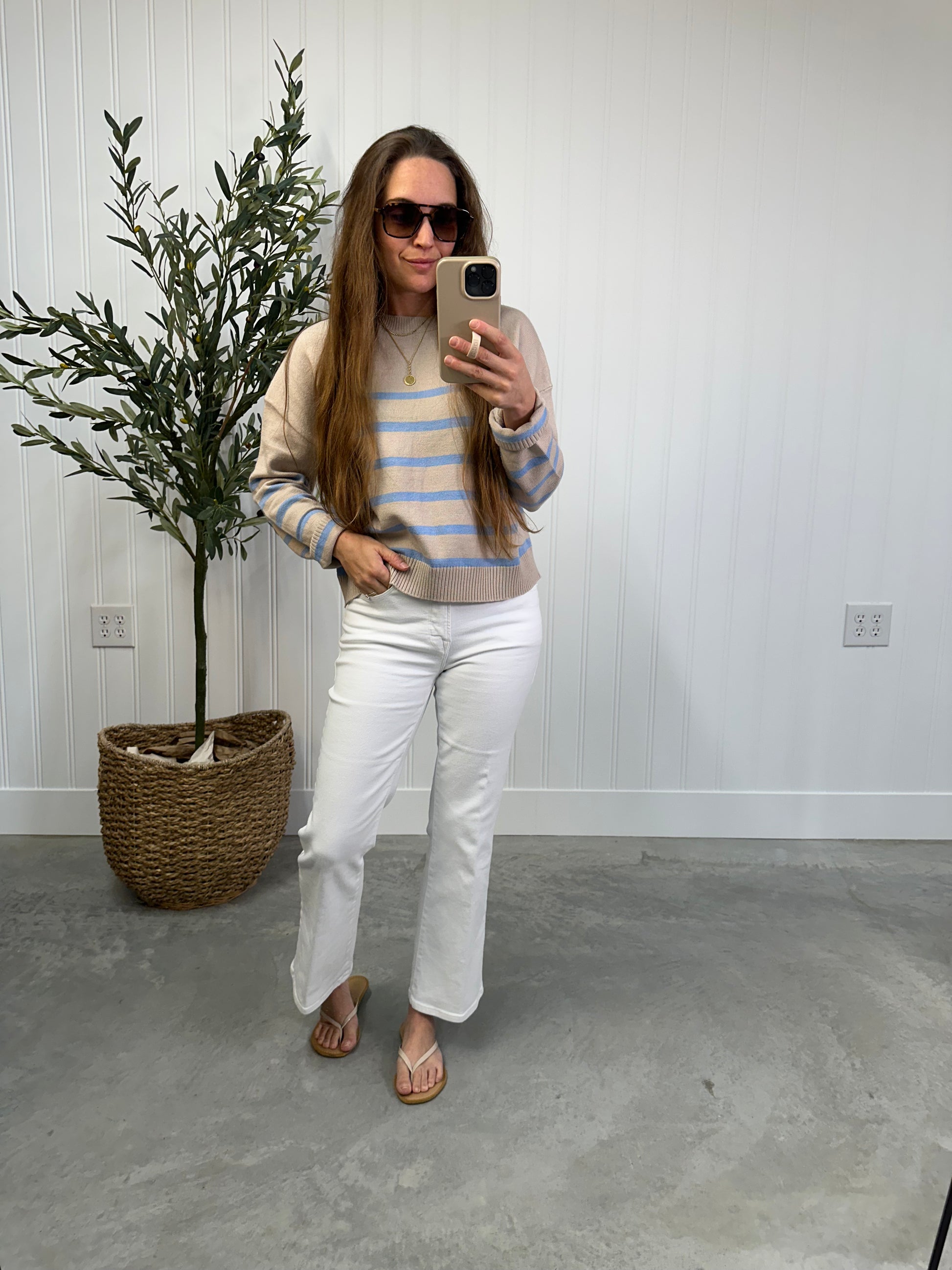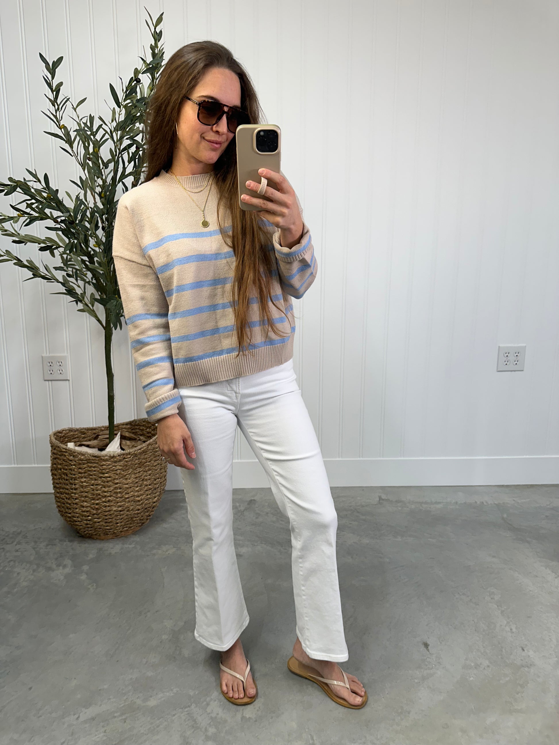 - Creamy stone & sky blue stripes